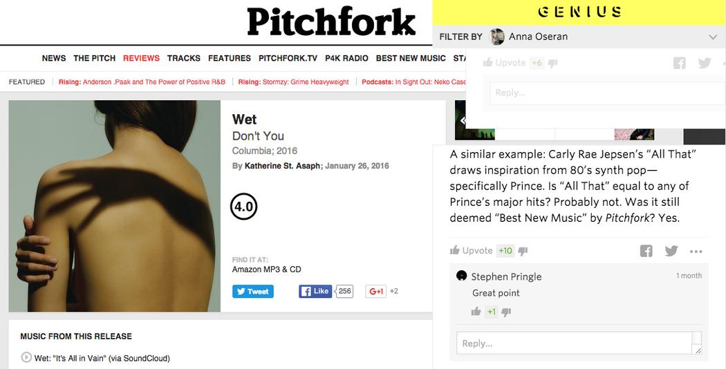Daha evvel tekrar Pitchfork için albüm inceleyen Meaghan Garvey de buna katılıyor ve “Trend öncüsü denen terim ne kadar klişe olursa olsun, bence artık trend öncüleri eleştirmenler yahut muharrirler değil,” diyor. “Albümün bir incelemesini okuyup bitirebileceğin müddette albümü üçüncü kere dinlemiş olabilirsin. Muharrirlerin büyük içgörüleri yahut ileri görüşlülükleri, sonları zorlayan yetenekleri olduğu söylenemez. Onlar şu an muhtemelen Twitter’da milyonlarca takipçisi olan ve onlardan çok daha cool olan rastgele bir 18 yaşındaki ergenle kovalamaca oynuyorlar.”