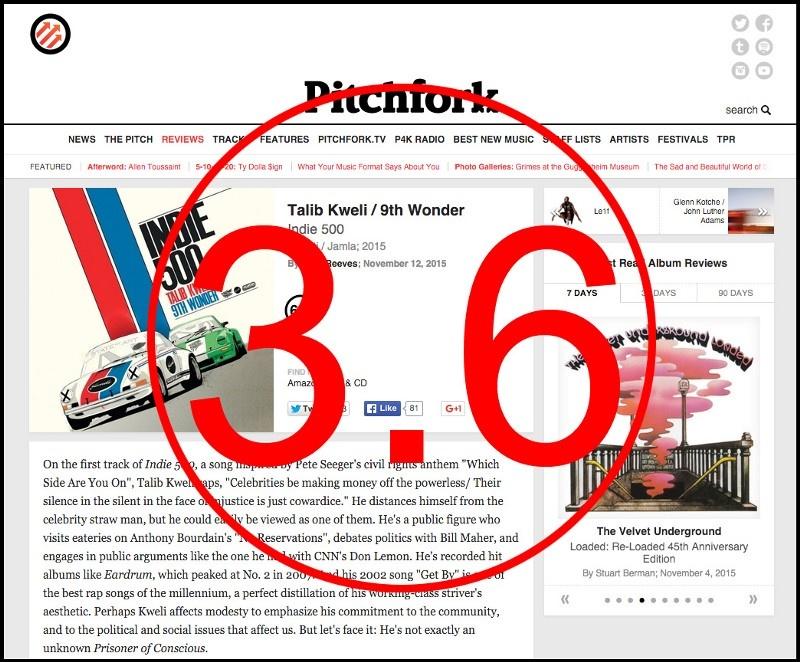 Bu yalnızca rock müziğin başına gelmiyor. Rapçiler de çok sefer eleştirmenlere savaş açmıştı. Wale, Complex’i “Yılın En Âlâ 50 Albümü” listelesinde ona yer vermedikleri için tehdit etmişti, ve 2015’te de Talib Kweli, albümü Indie 500’ı inceleyen Pitchfork’un incelemesini incelemiş ve 3.6 vermişti.