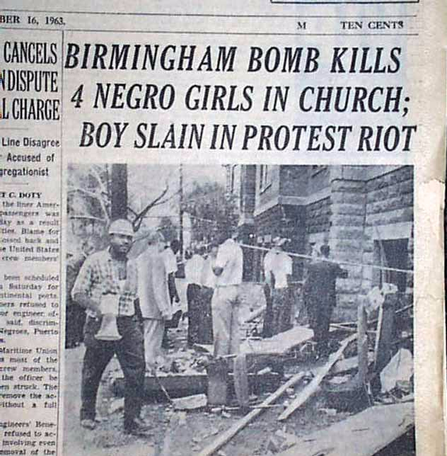 Yerel gazete Birmingham Post-Herald’ın birinci sayfadan verdiği haber başlığını da karşılaştırma olması ismine aşağıya bırakıyorum: “Patlayan bomba 4 çocuğu öldürdü, 17 kişiyi yaraladı”